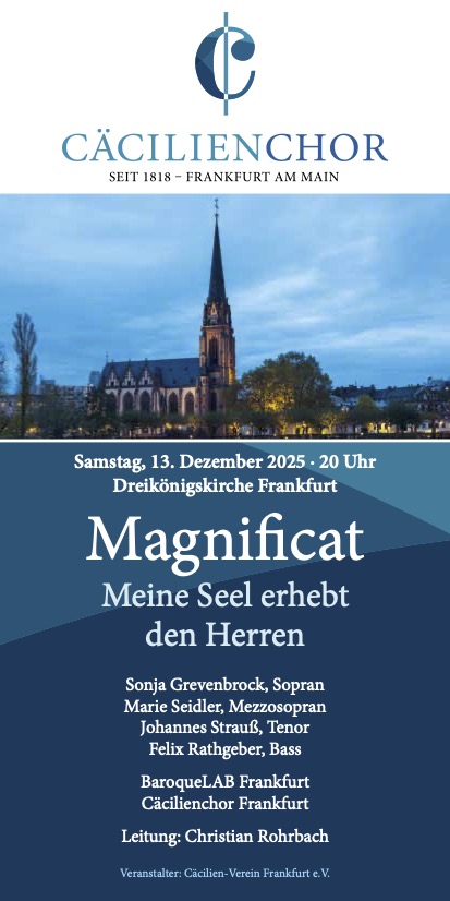 Samstag, 13. Dezember 2025 - Magnificat von J. S. Bach mit dem Cäcilienchor Frankfurt Leitung: Christian Rohrbach Dreikönigskirche, Tucholskystraße 40, 60598 Frankfurt am Main